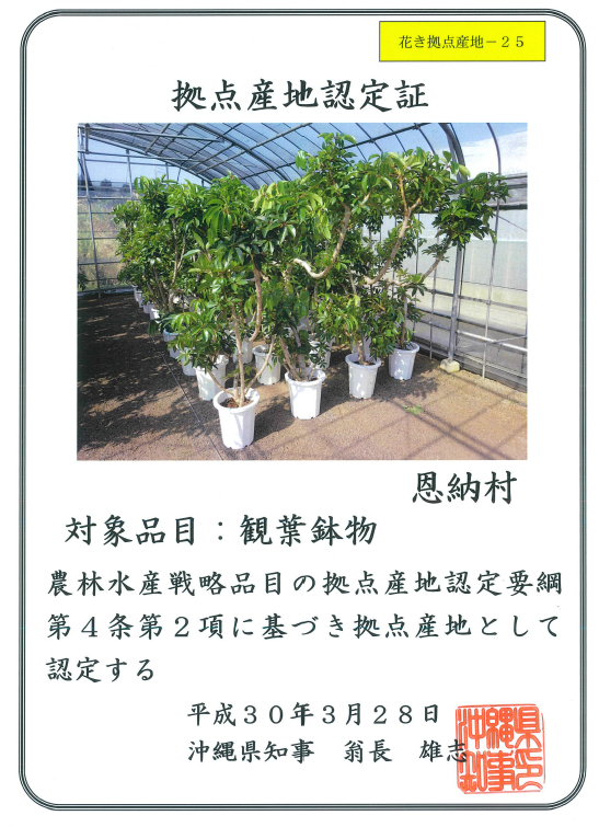 恩納村は下記各品目で、沖縄県の拠点産地として認定されています。