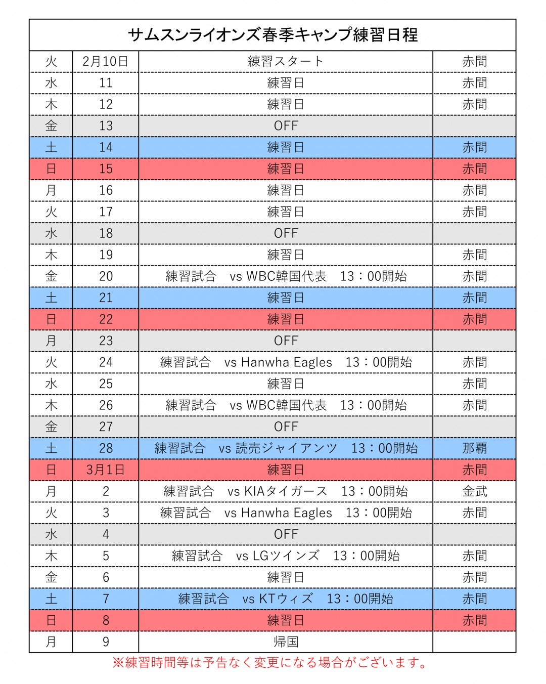 - サムスンライオンズ春季キャンプ2026へ行こう!
