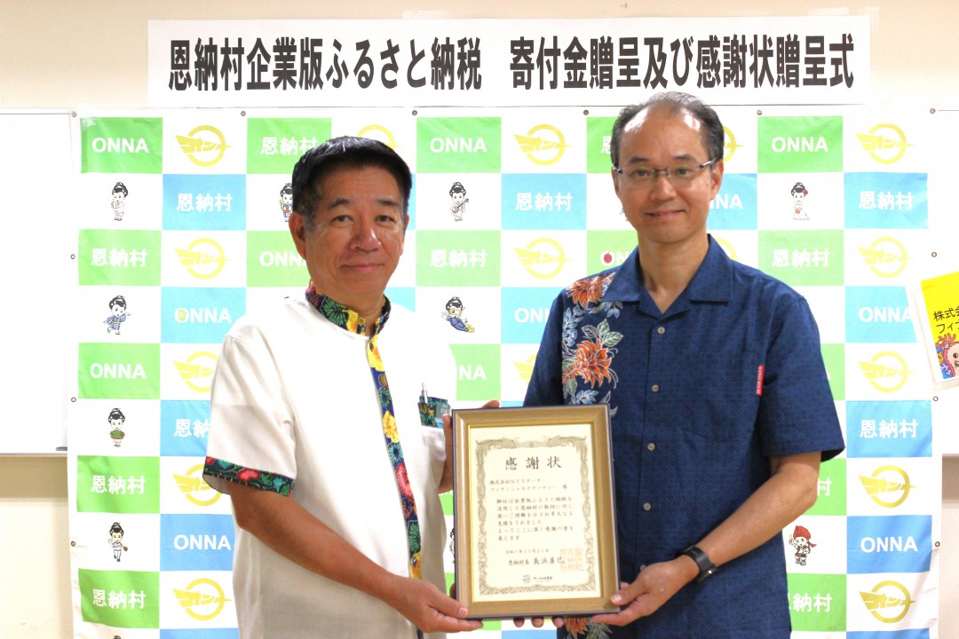恩納村長より感謝状贈呈