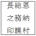 恩納村長之印 | 方20mm | (11) | 村長名をもってする一般文書 | 1 | 税務課長 |