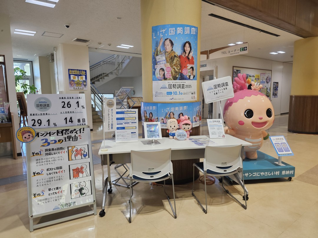 役場1Fロビーにて、国勢調査のオンライン回答支援ブースを設置しました。