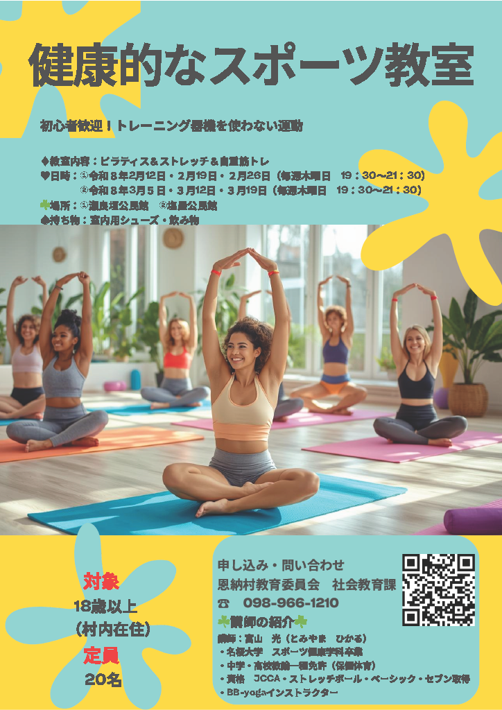 ホーム 新着情報 令和7年度【恩納村スポーツ教室の開催について】 令和7年度【恩納村スポーツ教室の開催について】 最終更新日:2026年01月26日 最近の記事 2026年01月26日 「介護予防・日常生活圏域ニーズ調査」にご協力ください 2026年01月26日 令和7年度【恩納村スポーツ教室の開催について】 2026年01月23日 恩納村庁舎エレベーター利用停止についてお知らせ 2026年01月22日 令和8年度入学通知書及び入学説明会についてお知らせ 2026年01月20日 生涯学習講座「AIと遊ぼう!言葉がカタチになっていく!」 アーカイブ 2026年(12) 2026年01月(12) 2025年(103) 2024年(124) 2023年(96) 2022年(110) 2021年(121) 2020年(105) 2019年(45) 2018年(50) 2017年(48) 2016年(23) 2015年(1)